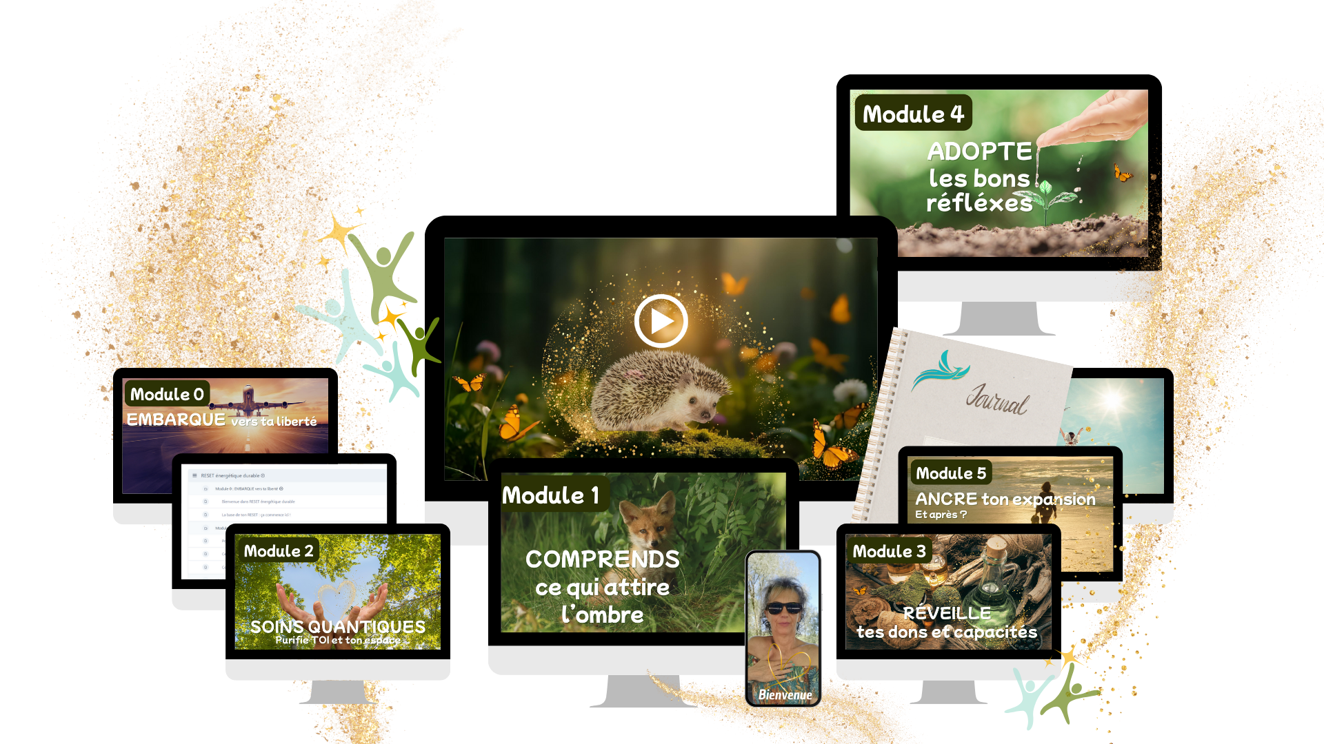 Une formation claire, structurée en 5 modules progressifs, pour comprendre enfin ce qu’on ne t’a jamais expliqué — et comment arrêter d’être un aimant à pollutions, sans prise de tête. (247 €)
