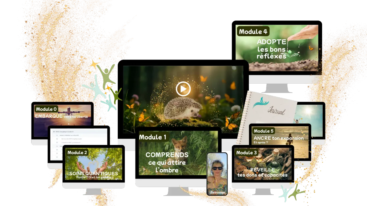 Une formation claire, structurée en 5 modules progressifs, pour comprendre enfin ce qu’on ne t’a jamais expliqué — et comment arrêter d’être un aimant à pollutions, sans prise de tête. (247 €)
